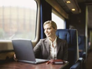 Businesswoman Sitting in a Train With a Laptop on a Tableнаименование и реквизиты гостиницы;